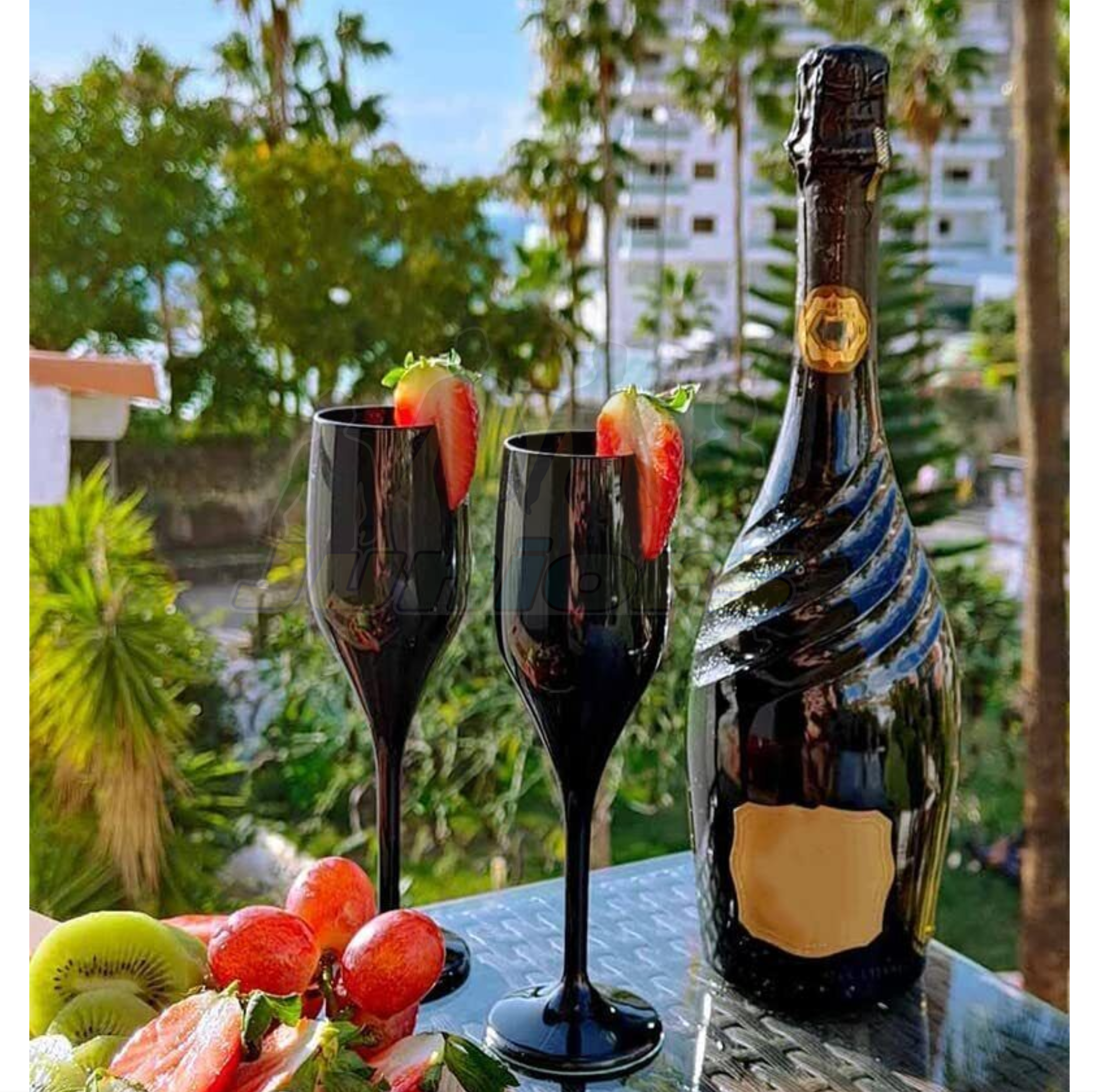 Calice infrangibile e molto resistente per champagne, vino o spumante di capacità 150ml. Colore nero.