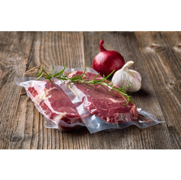 Le buste per sottovuoto, composte da PA/PE (poliammide e strato saldante in polietilene), sono adatte al confezionamento sottovuoto di prodotti alimentari.