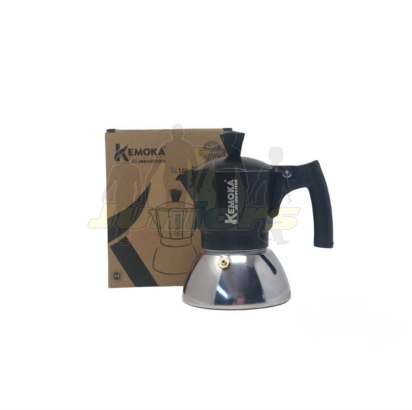 Italy Caffettiera Kemoka da due tazze. La caffettiera a induzione in alluminio Kemoka da 2 tazze rappresenta un’eccellente combinazione di design elegante e funzionalità avanzata. Realizzata con un re sistente corpo inalluminio, questa caffettiera garantisce una distribuzione uniforme del calore, consentendo di ottenere il massimo aroma e sapore dal caffè. La sua versatilità è evidente grazie alla compatibilità con tutti i piani cottura, inclusi quelli a induzione, offrendo la flessibilità di utilizzo in diversecucine.