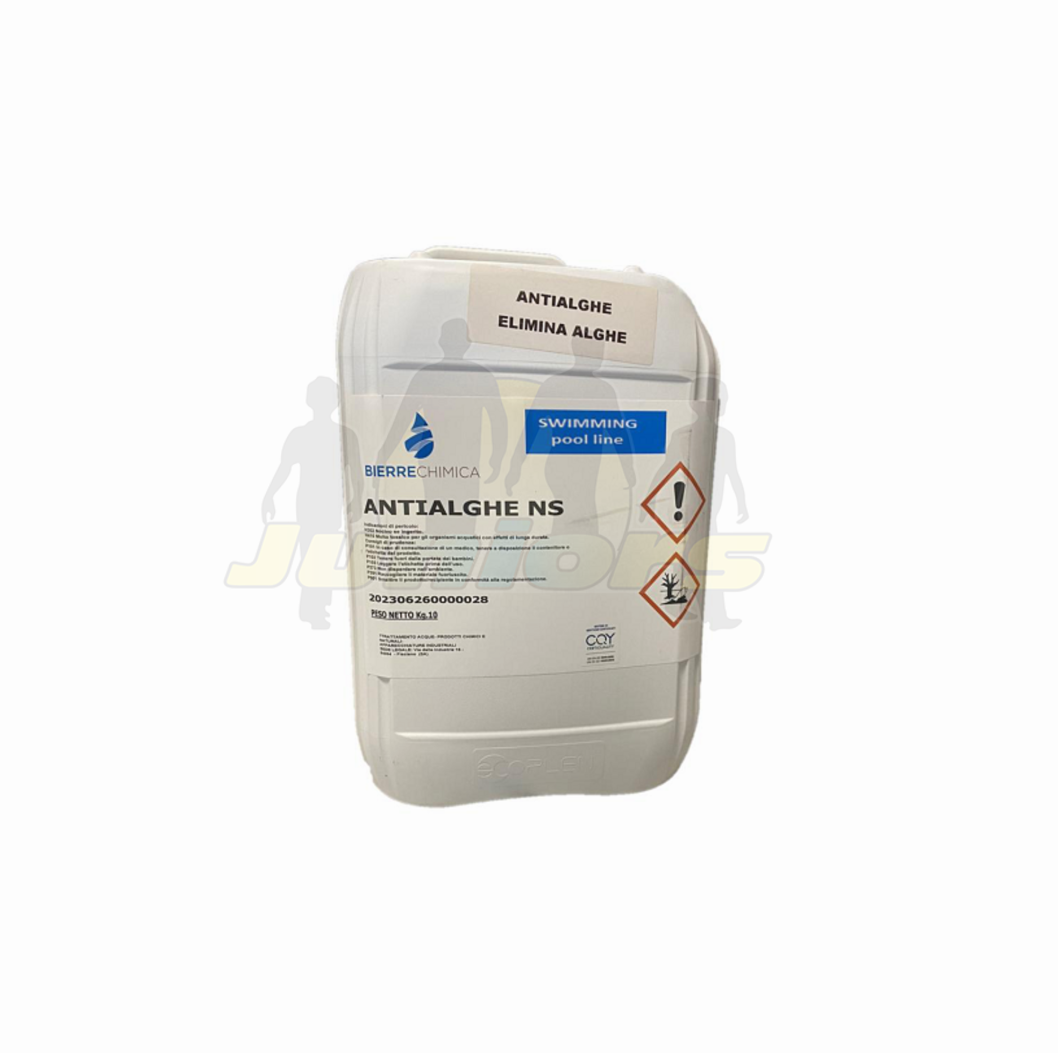 Formulato liquido non schiumogeno a base di sali di ammonio poliquaternari dalla efficace e duratura azione alghicida. È attivo in tutti i campi di pH, sia contro le alghe verdi in so-spensione che co ntro le alghe rosse sulle pareti.