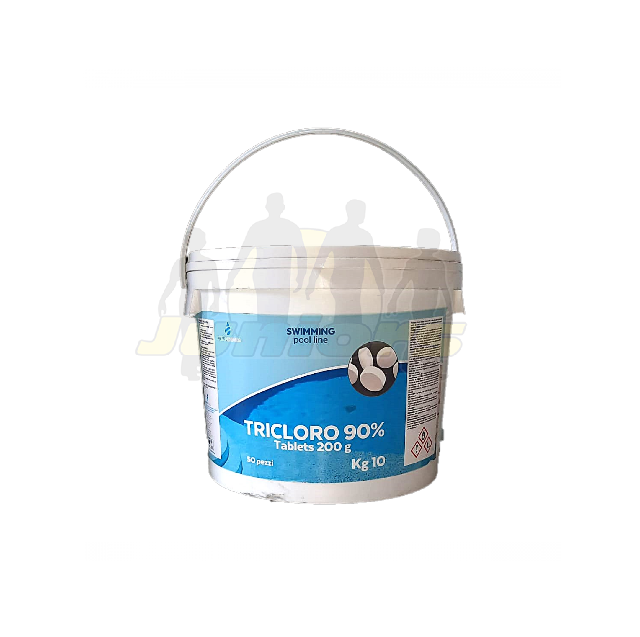 Prodotto chimico Tricloro Tablets 90% a base di acido tricloroisocianurico al 90%. Prodotto specifico per la disinfezione dell’acqua di piscine pubbliche o private.