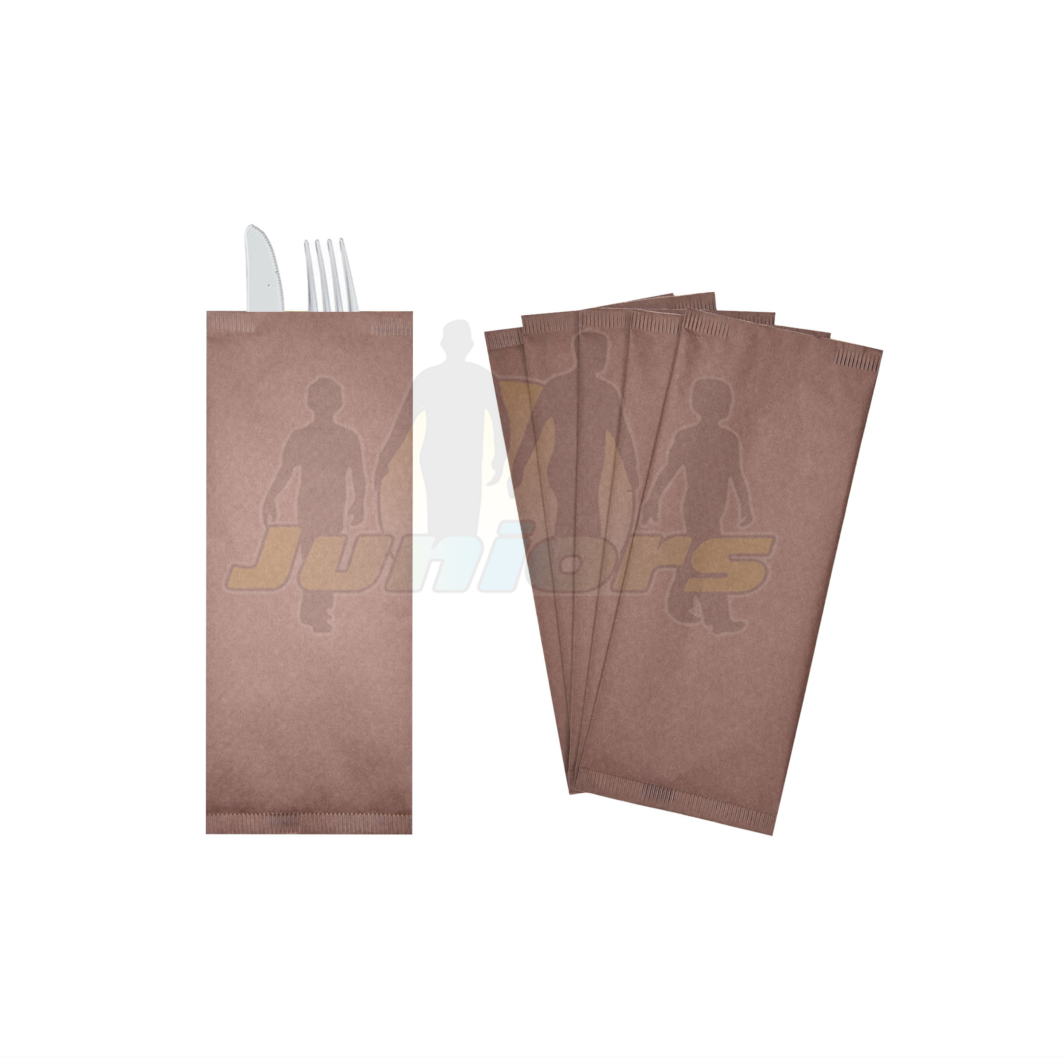 Portaposate in carta paglia colore marrone con tovagliolo in carta bianca incluso.